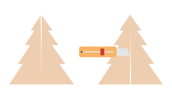 Använd en sax, en kniv eller en linjal och skär genom kartongen efter granens form. För att få ett fint snitt, använd det verktyg som är mest exakt.
