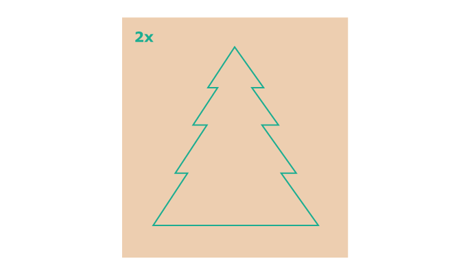 Ta två kartongark och skär dem till önskad storlek för din kartongjulgran. Rita en julgransliknande form på var och en.