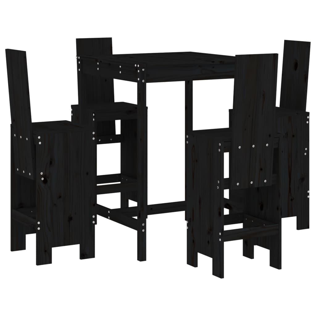 vidaXL Bargrupp för trädgården 5 delar svart massiv furu