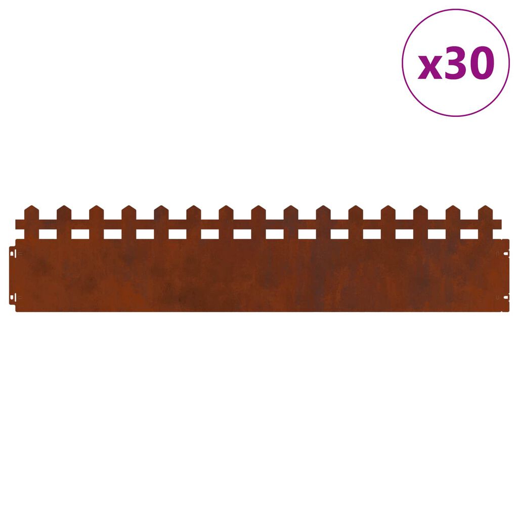 vidaXL Gräskanter 30 pcs Rostig 103 x 0,05 x 22 cm Väderbeständig stål