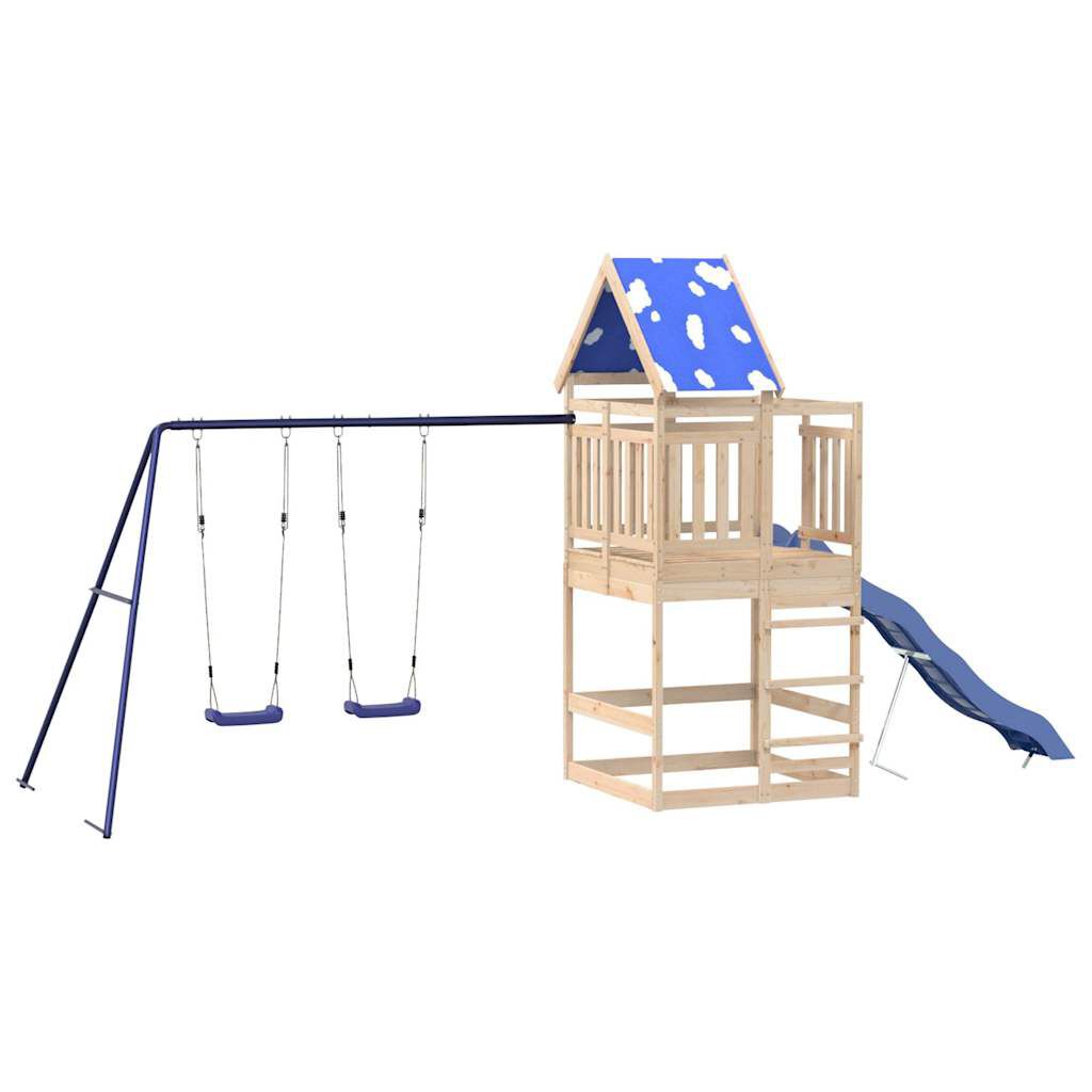• Tankeväckande design: Dess omgivande träräcken är utformade för att säkerställa barnens säkerhet under deras glada lek. Dessutom ger trätaket skugga på varma sommardagar.