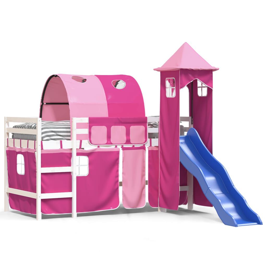 vidaXL Loftsäng med torn rosa 90x200 cm massiv furu