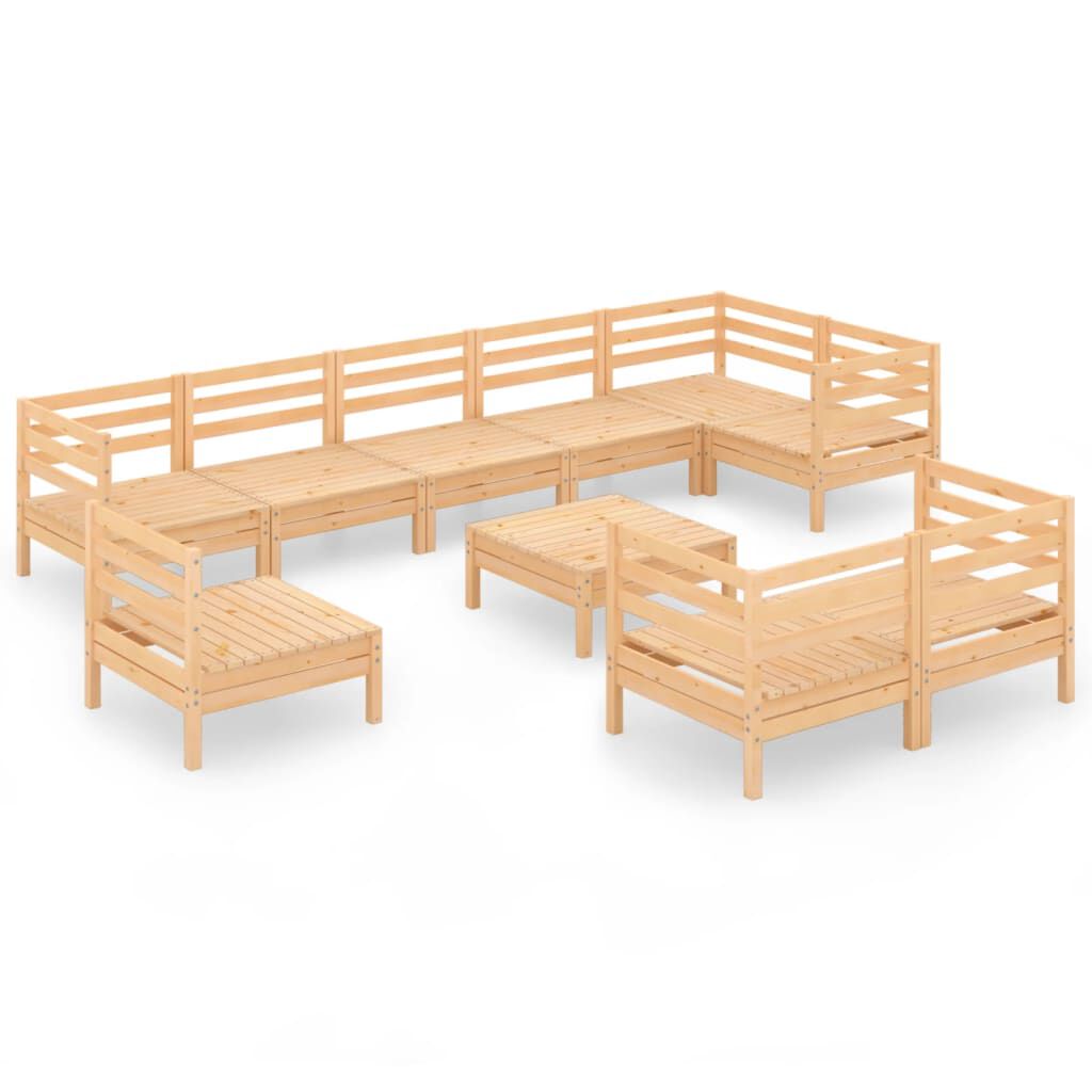 vidaXL Loungegrupp för trädgården 10 delar massiv furu