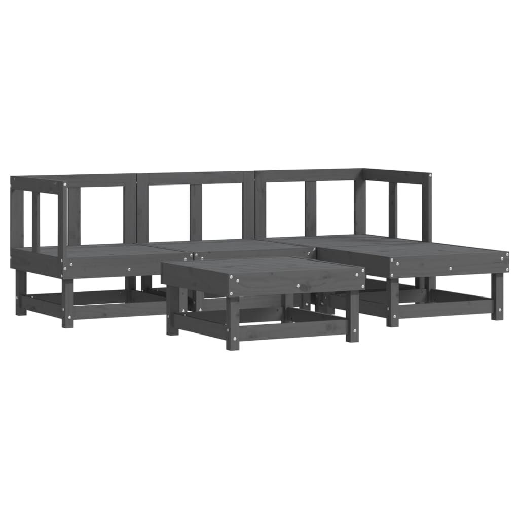 vidaXL Loungegrupp för trädgården 5 delar grå massiv furu
