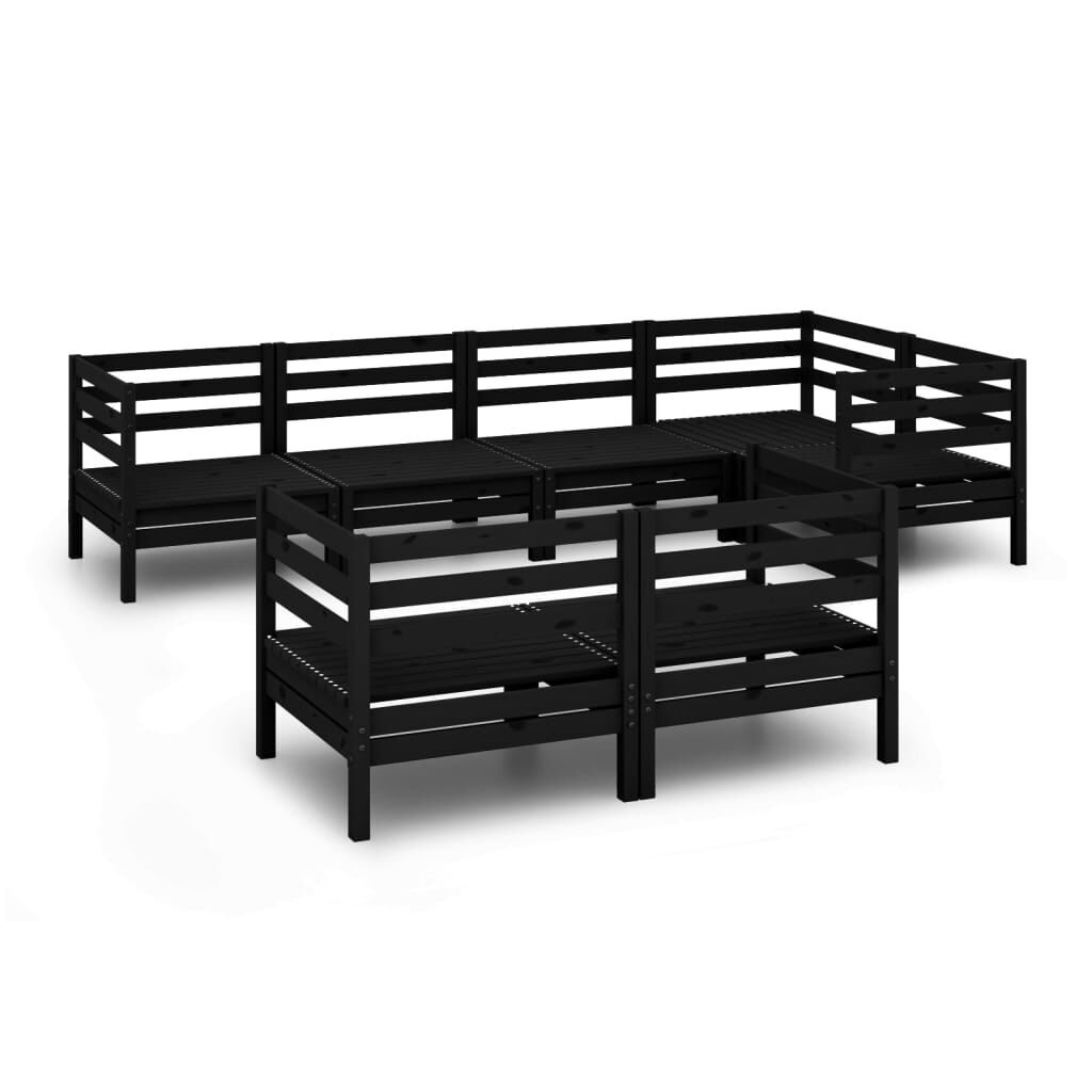 vidaXL Loungegrupp för trädgården 7 delar svart massiv furu