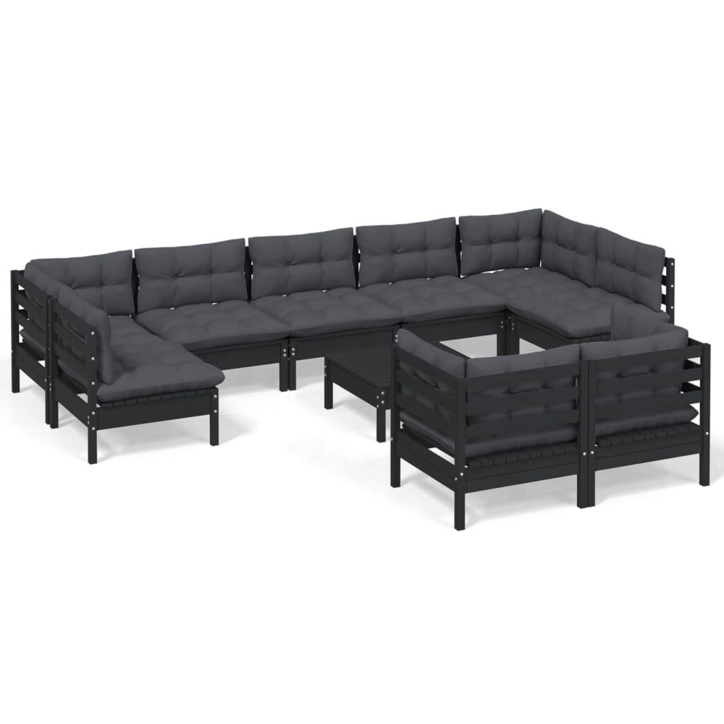 vidaXL Loungegrupp för trädgården med dynor 10 delar svart massiv furu