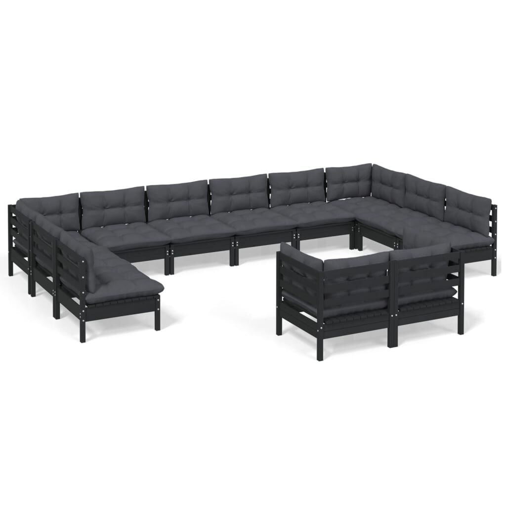 vidaXL Loungegrupp för trädgården med dynor 12 delar svart massiv furu