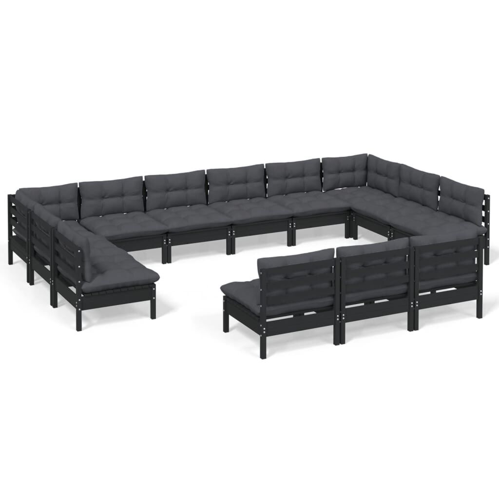 vidaXL Loungegrupp för trädgården med dynor 13 delar svart massiv furu