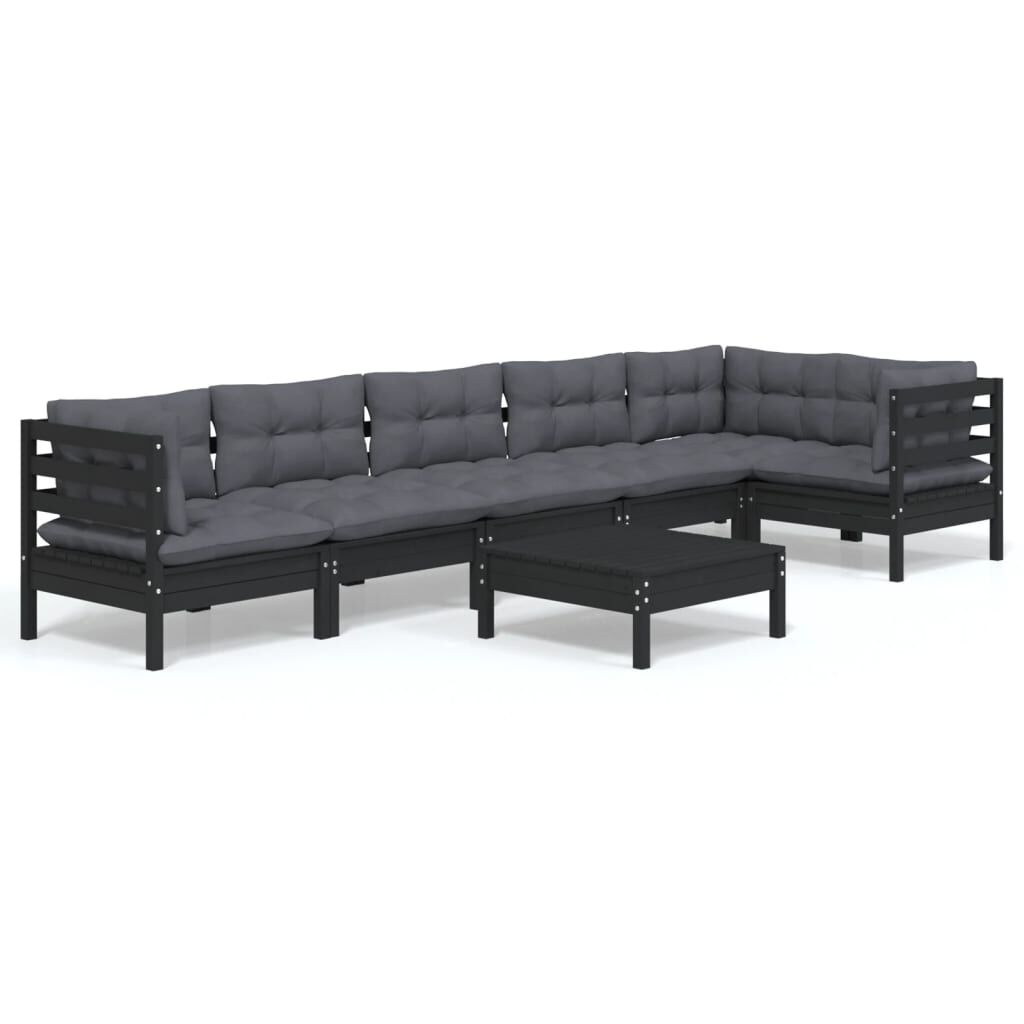 vidaXL Loungegrupp för trädgården med dynor 7 delar svart massiv furu