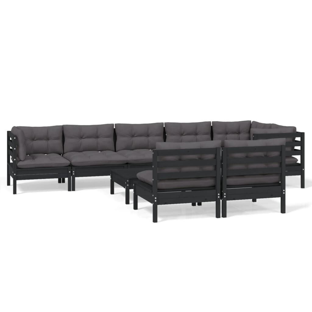 vidaXL Loungegrupp för trädgården med dynor 9 delar svart massiv furu