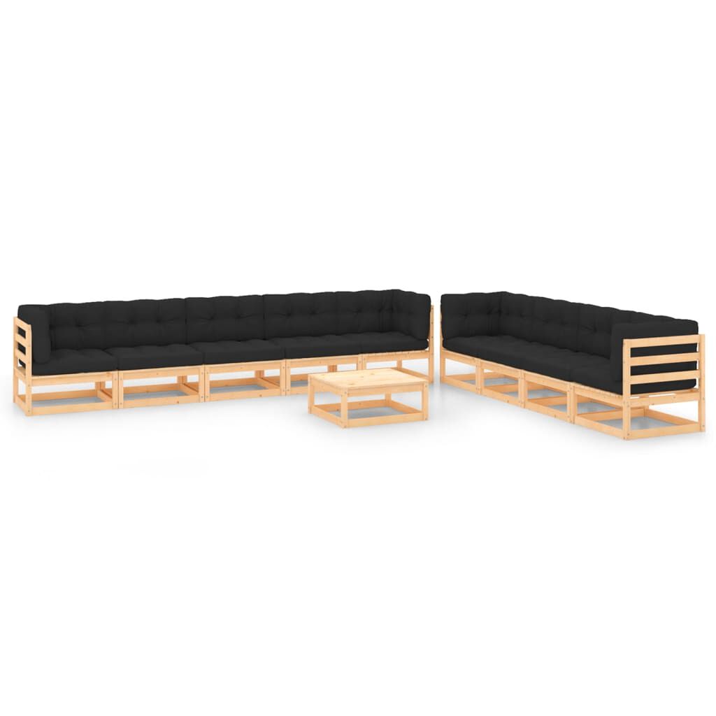 vidaXL Loungegrupp med antracitfärgade dynor 10 delar massiv furu