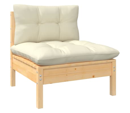 vidaXL Loungegrupp med gräddvita dynor 8 delar massiv furu