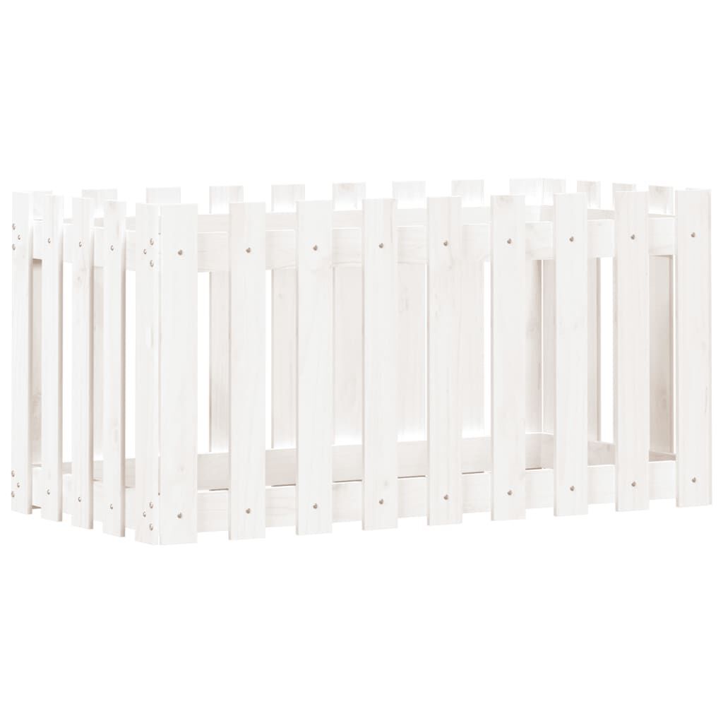 vidaXL Odlingslåda med staket-design vit 100x50x50 cm massiv furu
