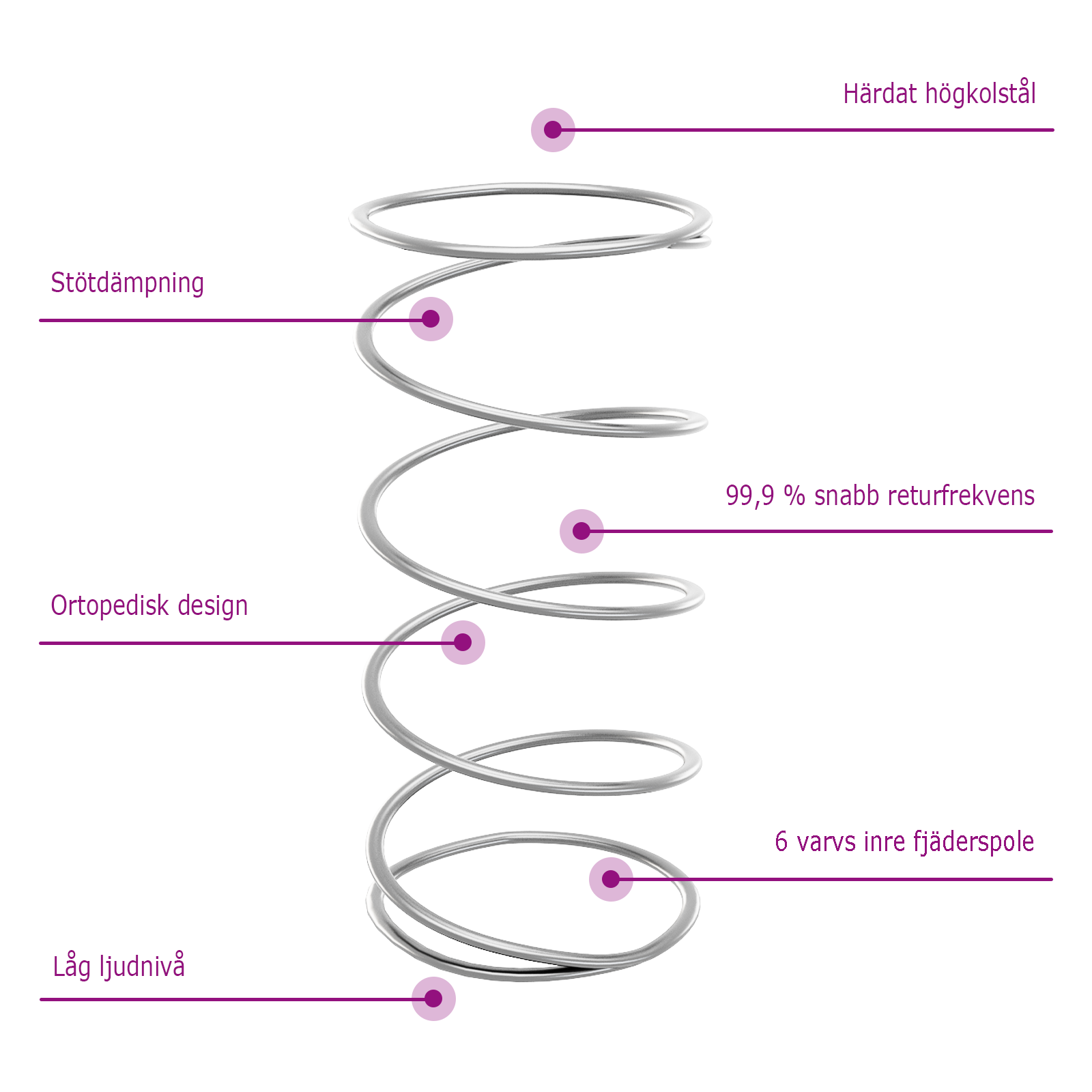 • Pocketresårmadrass: Den inbyggda individuella pocketresåren är känd för sin mycket höga kvalitet samtidigt som den säkerställer en hög hållbarhet och anpassningsförmåga. Den absorberar buller och stötar som orsakas av en orolig sömn.
