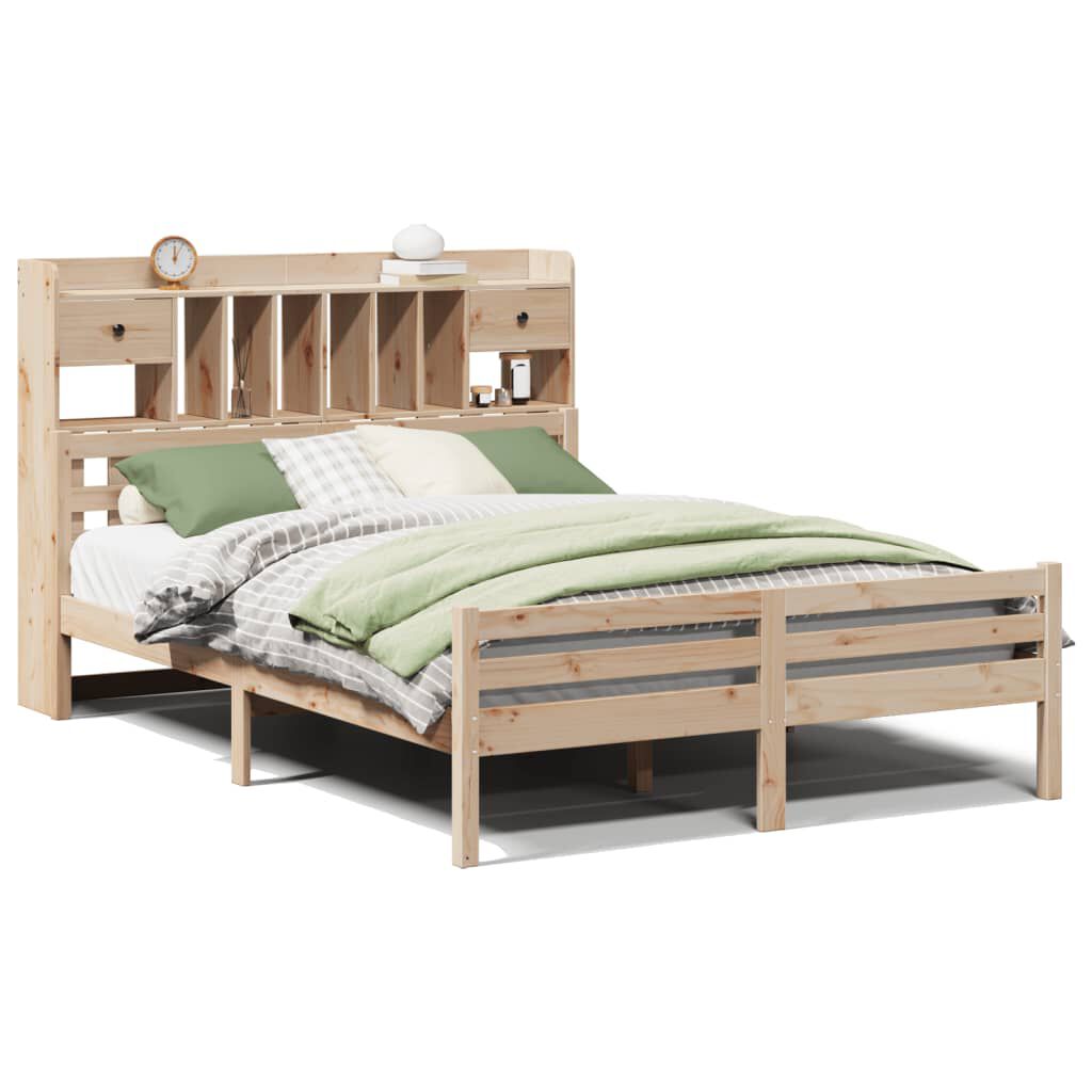 vidaXL Säng med bokhylla utan madrass 140x190cm massiv furu