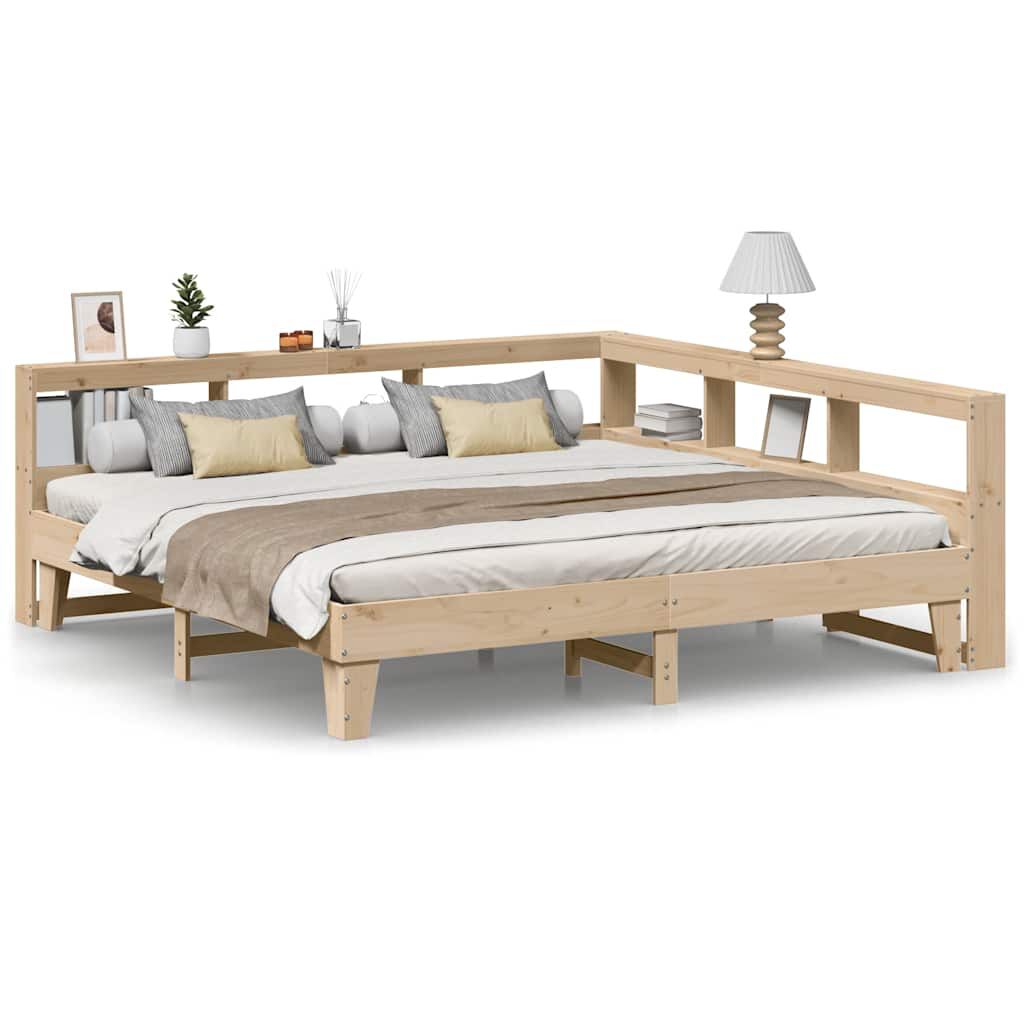 vidaXL Säng med bokhylla utan madrass 200x200cm massiv furu