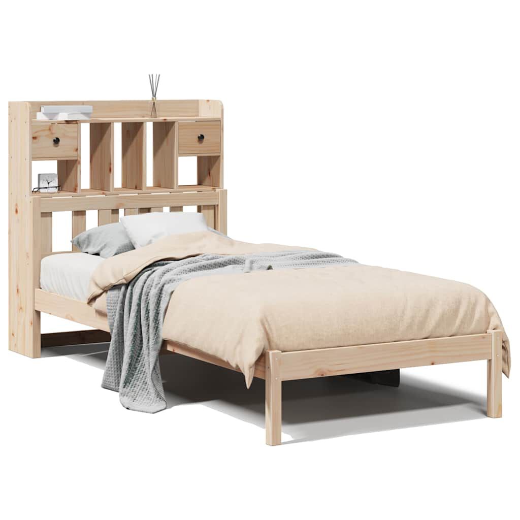 vidaXL Säng med bokhylla utan madrass 90x190cm massiv furu