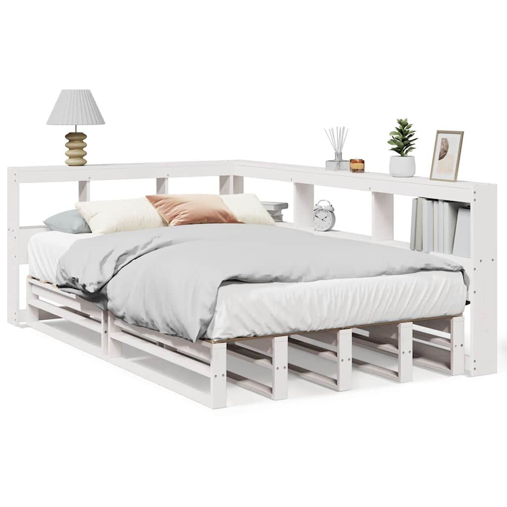 vidaXL Säng med bokhylla utan madrass vit 120x200 cm massiv furu