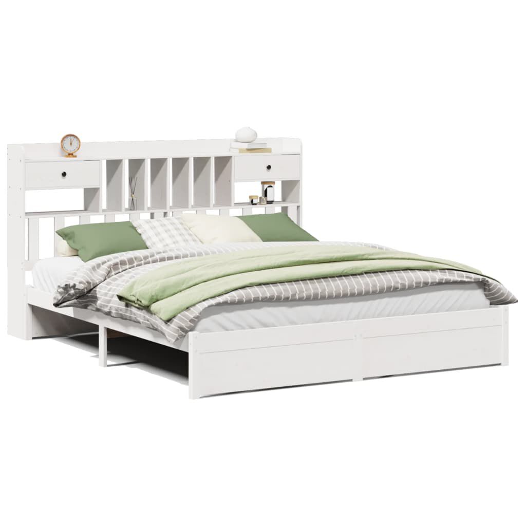 vidaXL Säng med bokhylla utan madrass vit 180x200cm massiv furu
