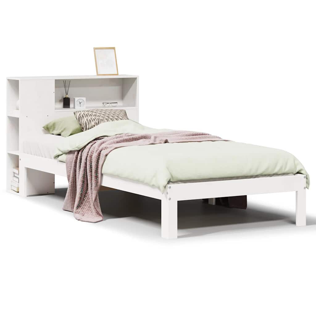 vidaXL Säng med bokhylla utan madrass vit 75x190cm massiv furu