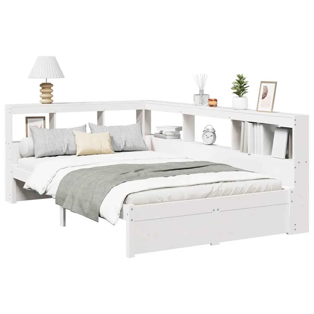 vidaXL Säng med bokhylla utan madrass vit 90x190cm massiv furu