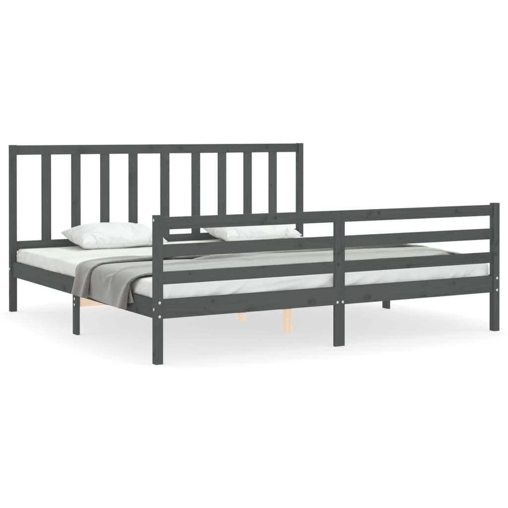 vidaXL Sängram med huvudgavel grå 200x200 cm massivt trä