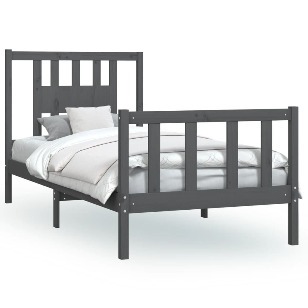 vidaXL Sängram med huvudgavel grå massiv furu 90x200 cm