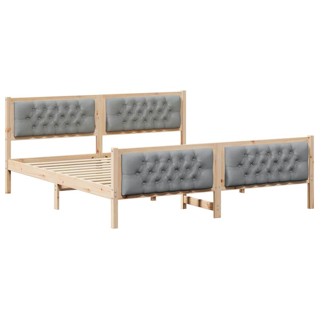 vidaXL Sängram med huvudgavel Ljusgrå 180 x 200 cm Massiv furu