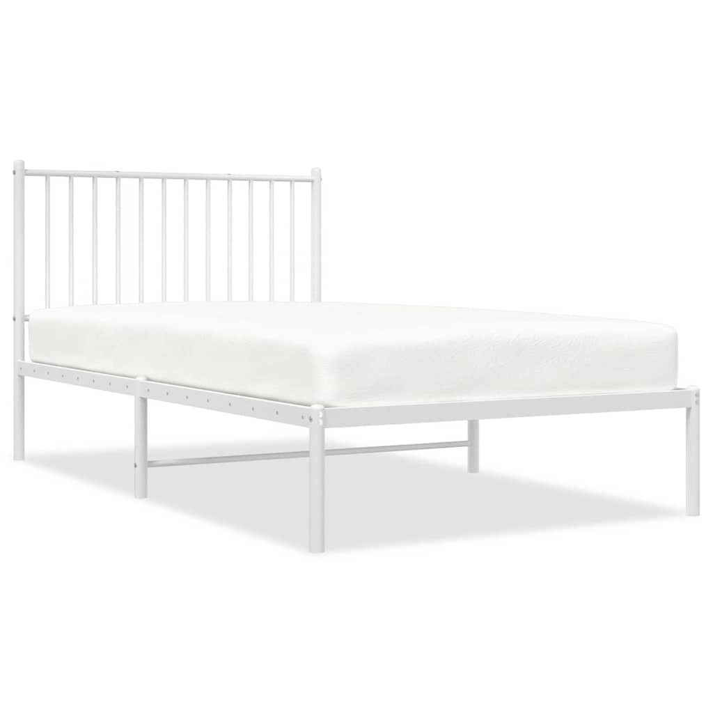 vidaXL Sängram med huvudgavel metall vit 100x190 cm