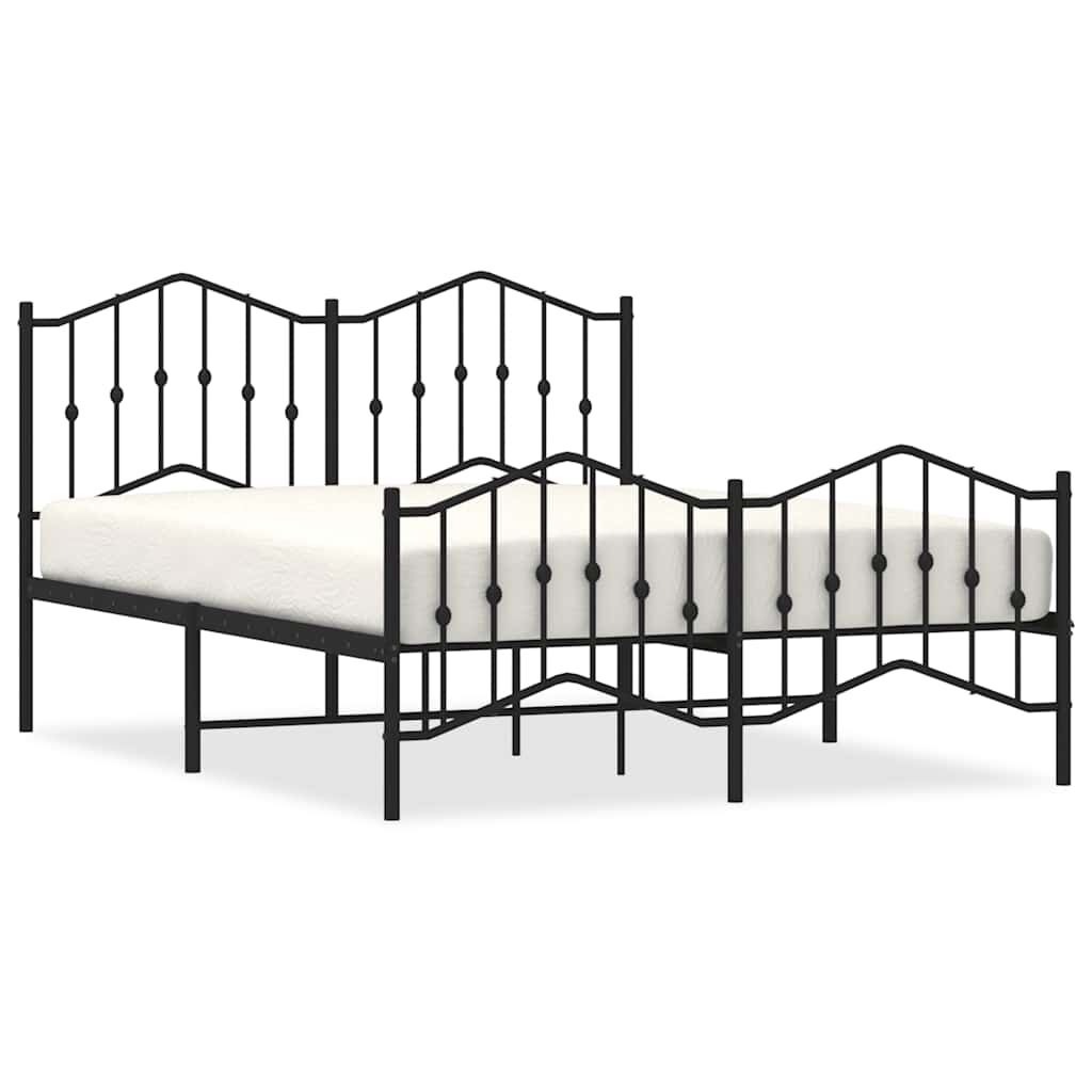 vidaXL Sängram med huvudgavel och fotgavel svart metall 135x190 cm