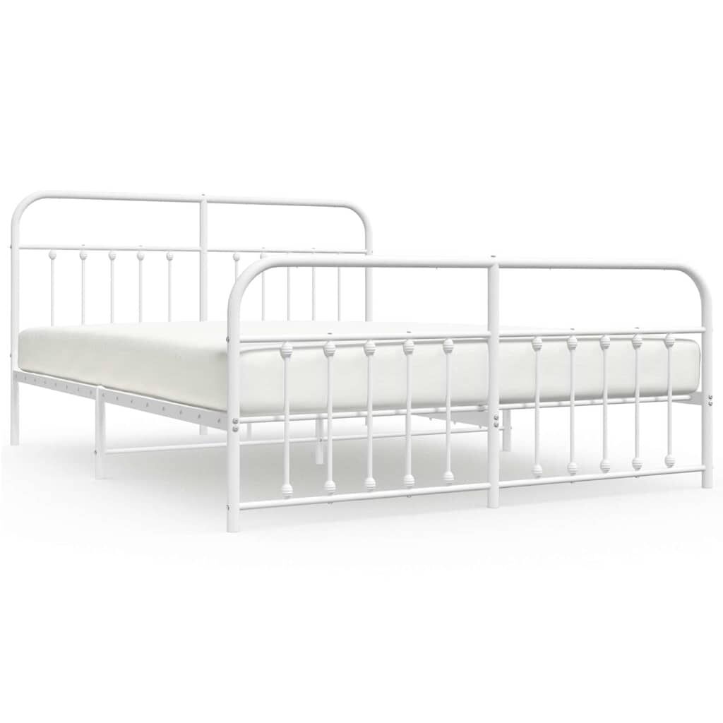 vidaXL Sängram med huvudgavel och fotgavel vit metall 183x213 cm