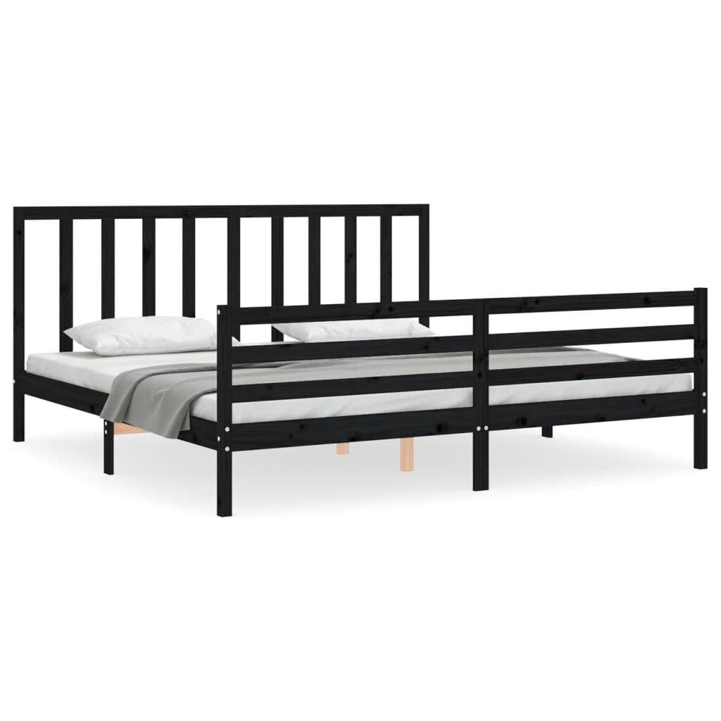 vidaXL Sängram med huvudgavel svart 200x200 cm massivt trä