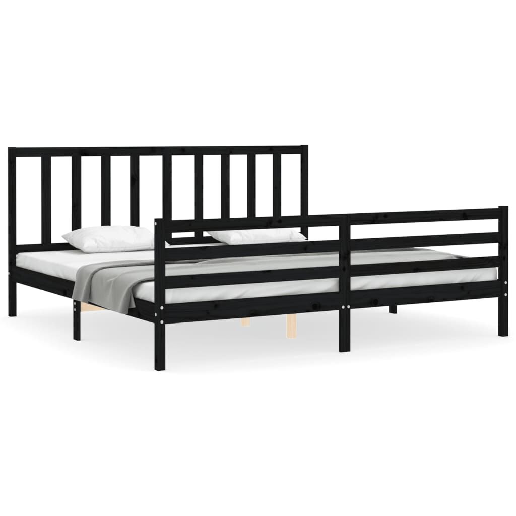 vidaXL Sängram med huvudgavel svart 200x200 cm massivt trä
