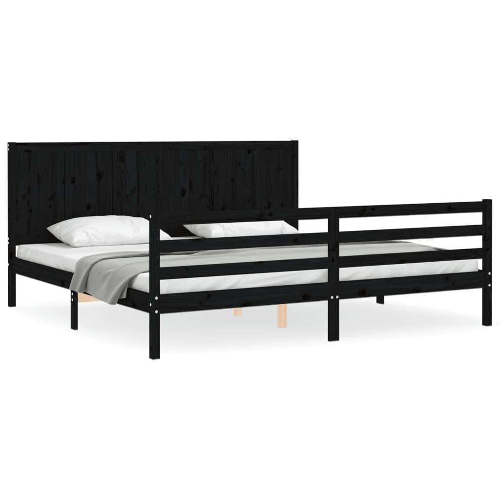 vidaXL Sängram med huvudgavel svart 200x200 cm massivt trä