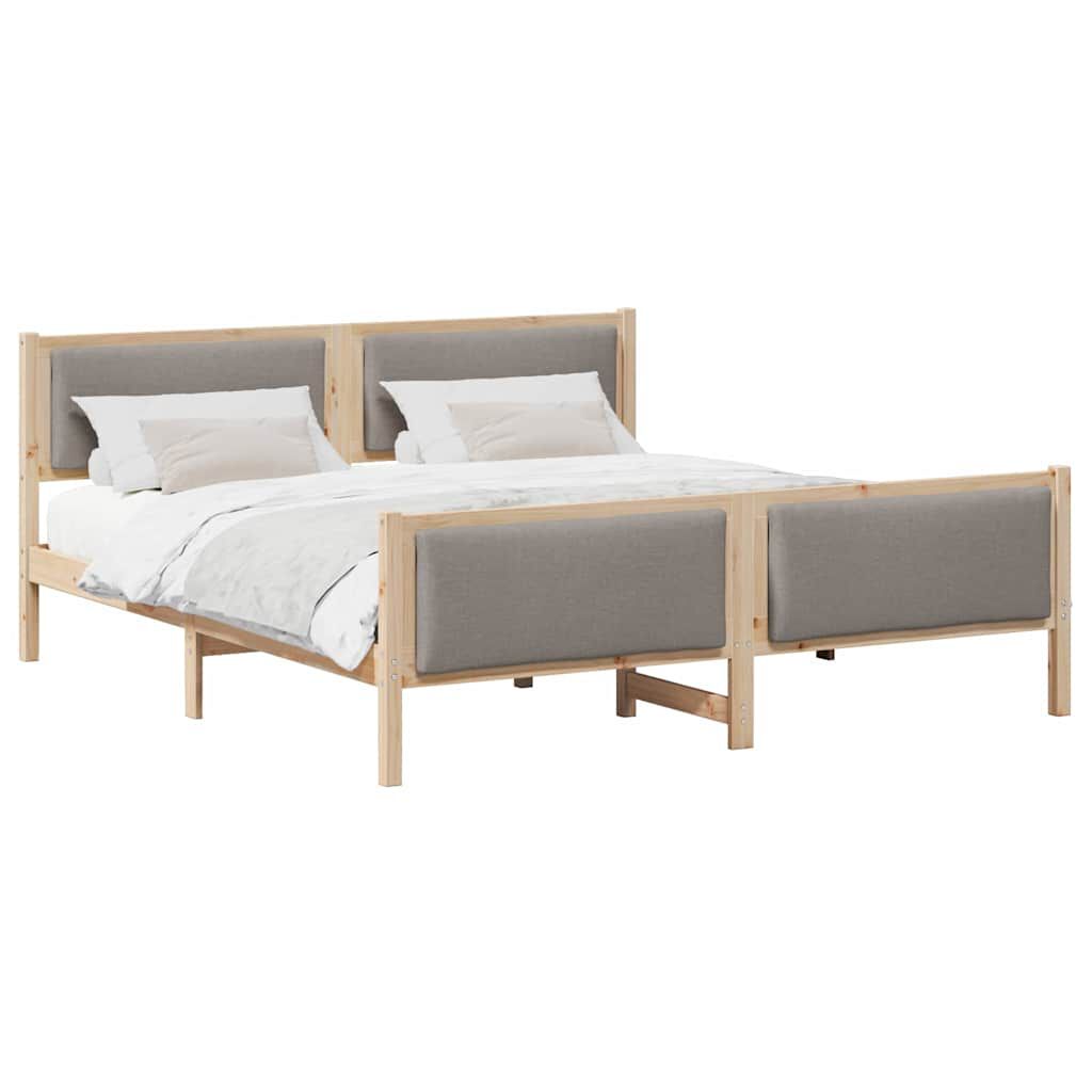 vidaXL Sängram med huvudgavel Taupe 200 x 200 cm tyg