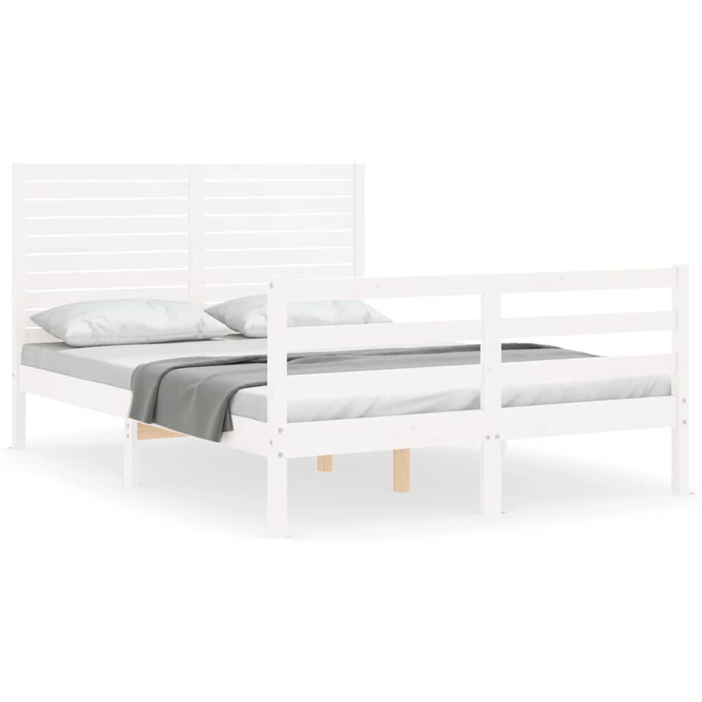 vidaXL Sängram med huvudgavel vit 120x200 cm massivt trä