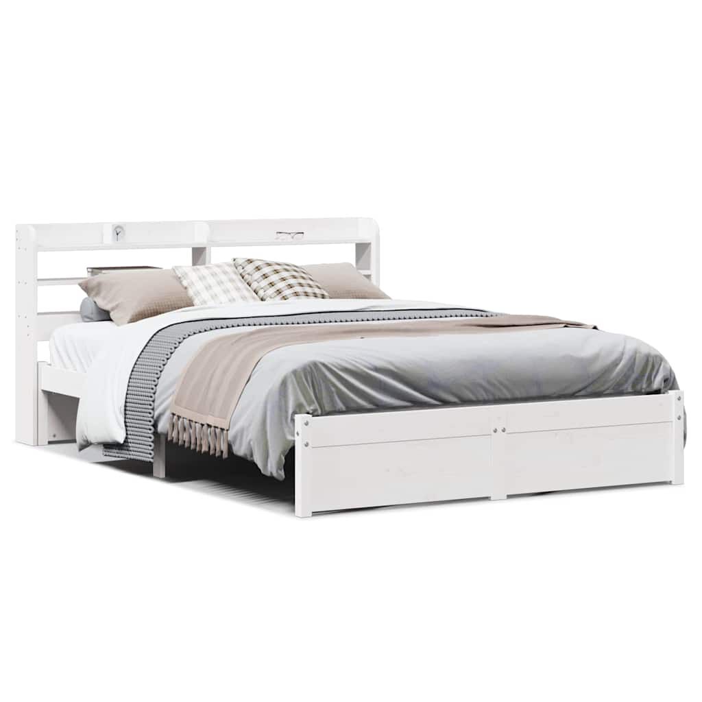 vidaXL Sängram med huvudgavel vit 135x190 cm massiv furu