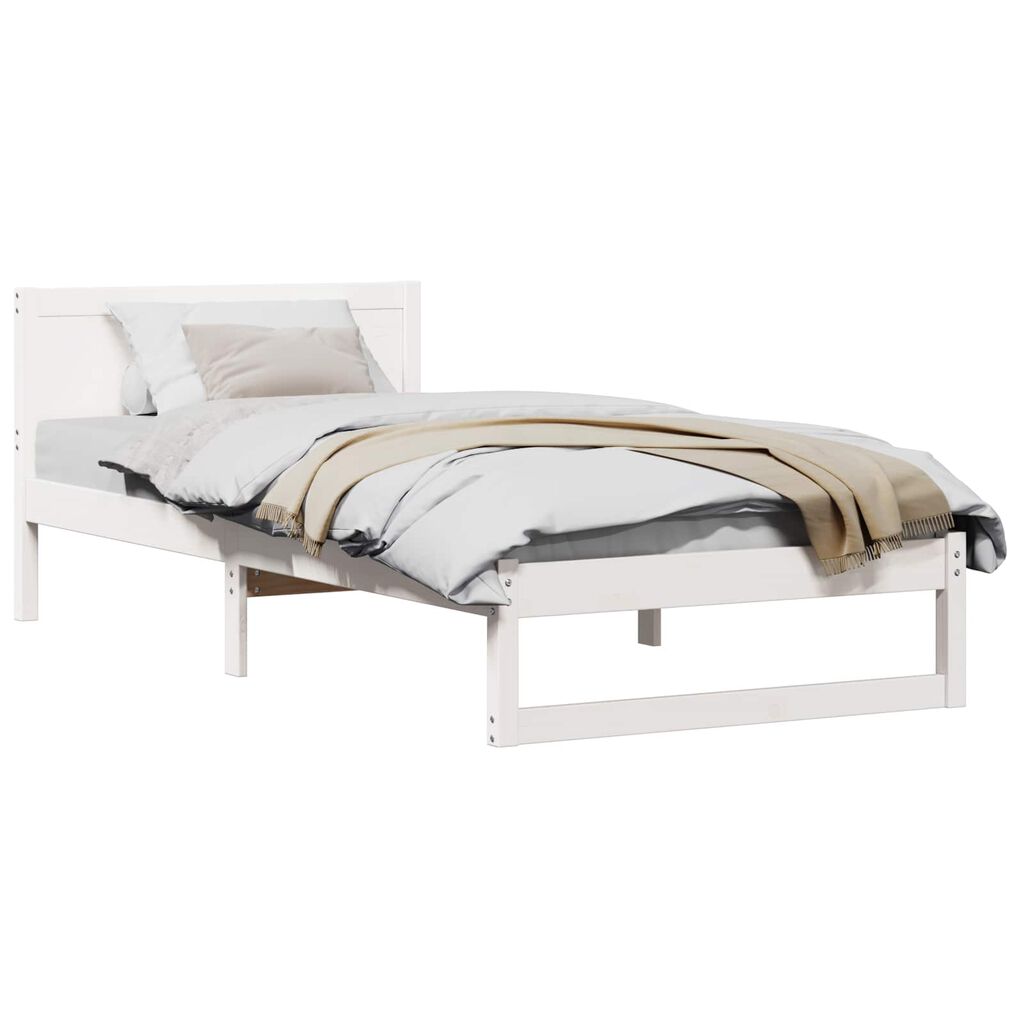 vidaXL Sängram med huvudgavel Vit 90 x 190 cm Massiv furu