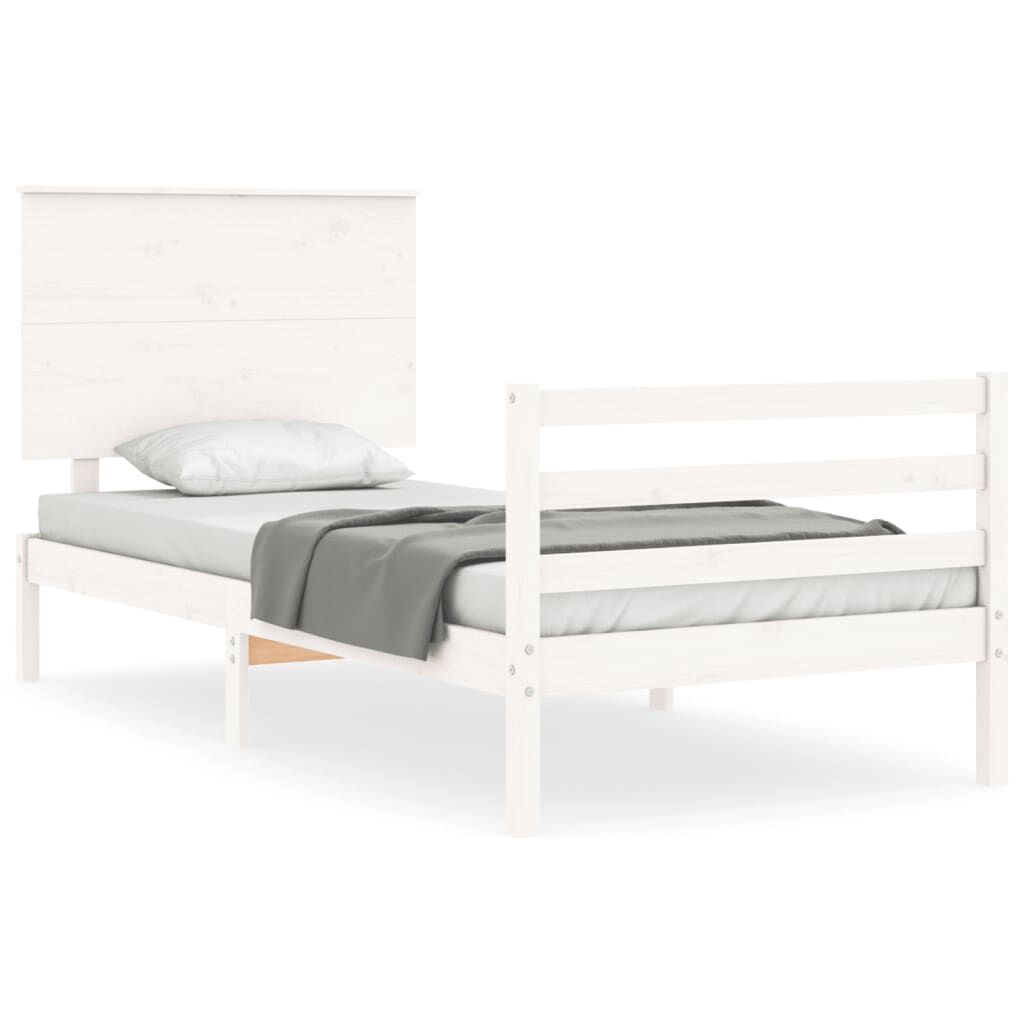 vidaXL Sängram med huvudgavel vit massivt trä