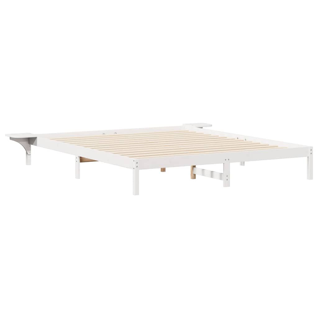 vidaXL Sängram med sidobord Vit 180 x 210 cm Massiv furu