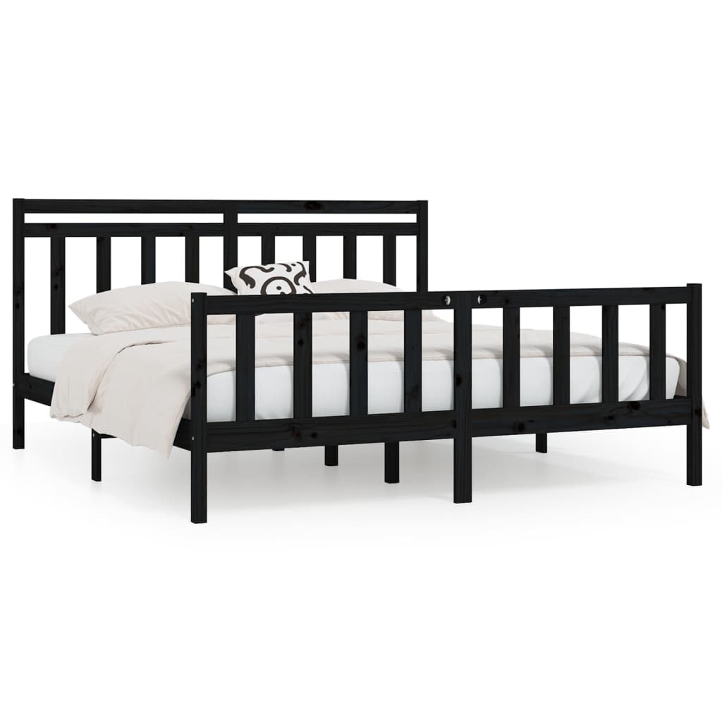 vidaXL Sängram svart massiv furu 180x200 cm