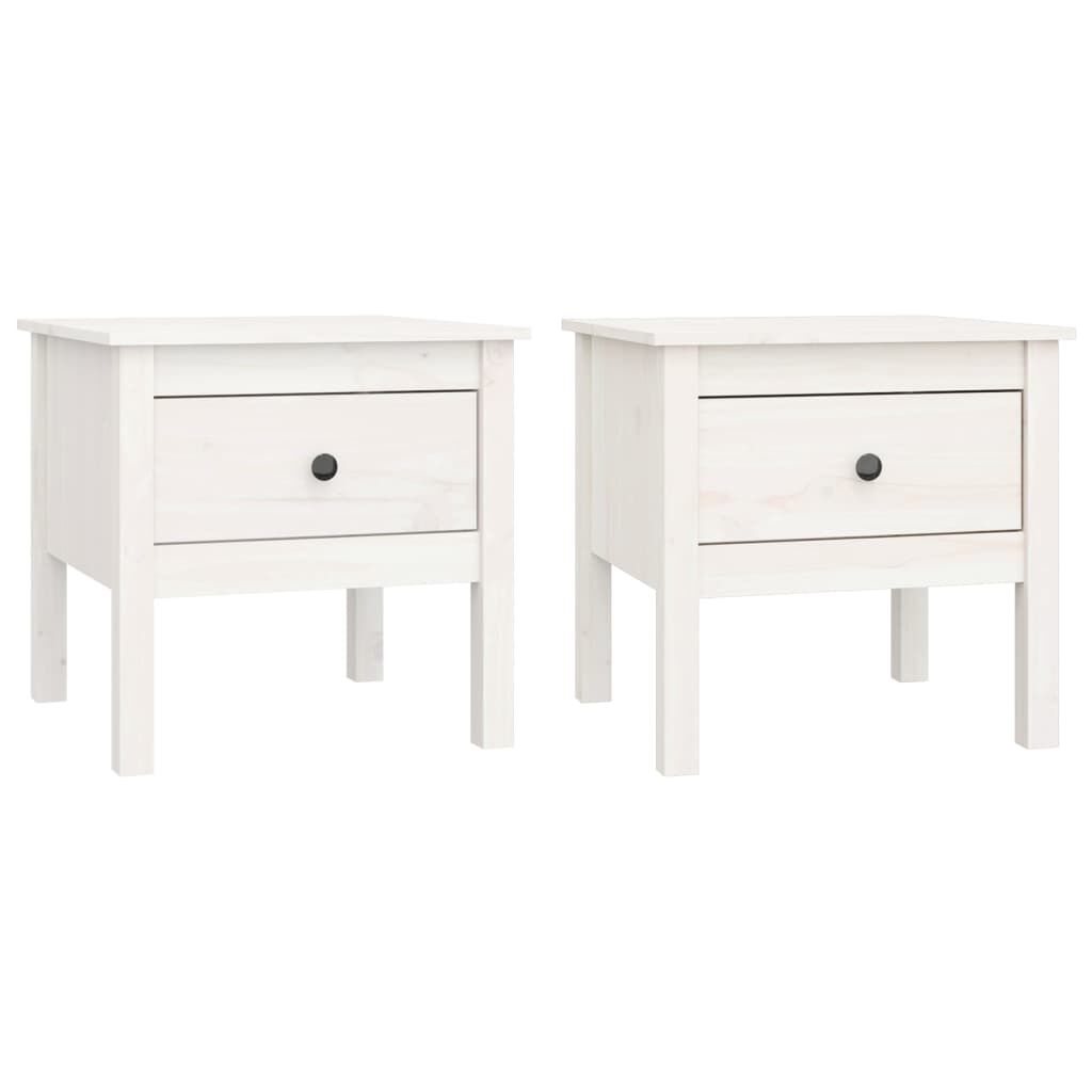 vidaXL Sidobord 2 st vit 50x50x49 cm massivt furuträ