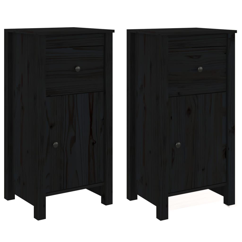 vidaXL Skänk svart 2 st 40x35x80 cm massiv furu