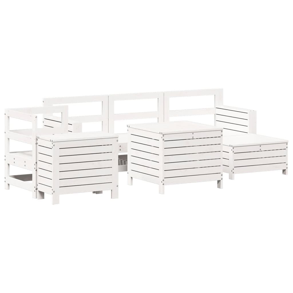 vidaXL Soffgrupp för trädgården 7 delar vit massiv furu
