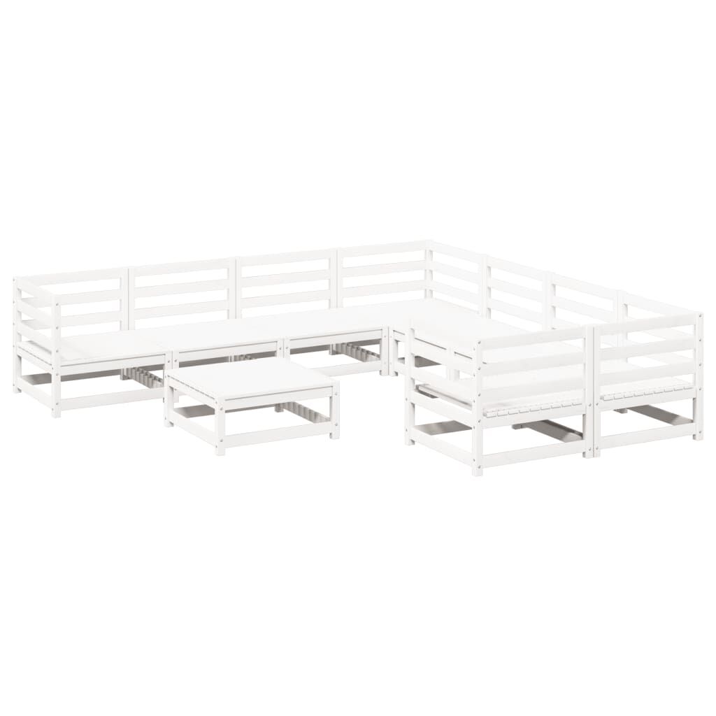 vidaXL Soffgrupp för trädgården 9 delar vit massiv furu