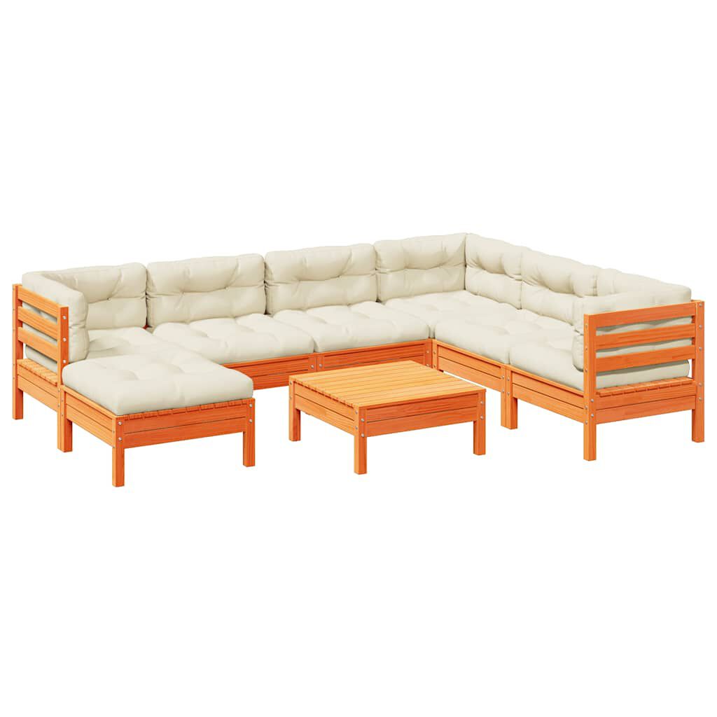 vidaXL Soffgrupp för trädgården med dynor 8 delar vaxbrun massiv furu