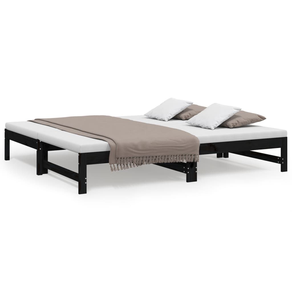 vidaXL Utdragbar dagbädd svart 2x(90x190) cm massiv furu