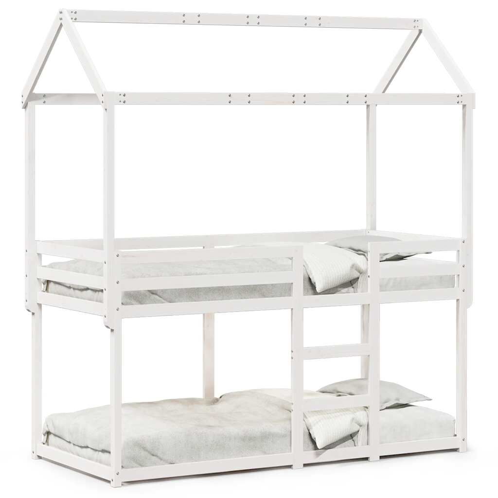vidaXL Våningssäng med tak vit 90x200 cm massiv furu