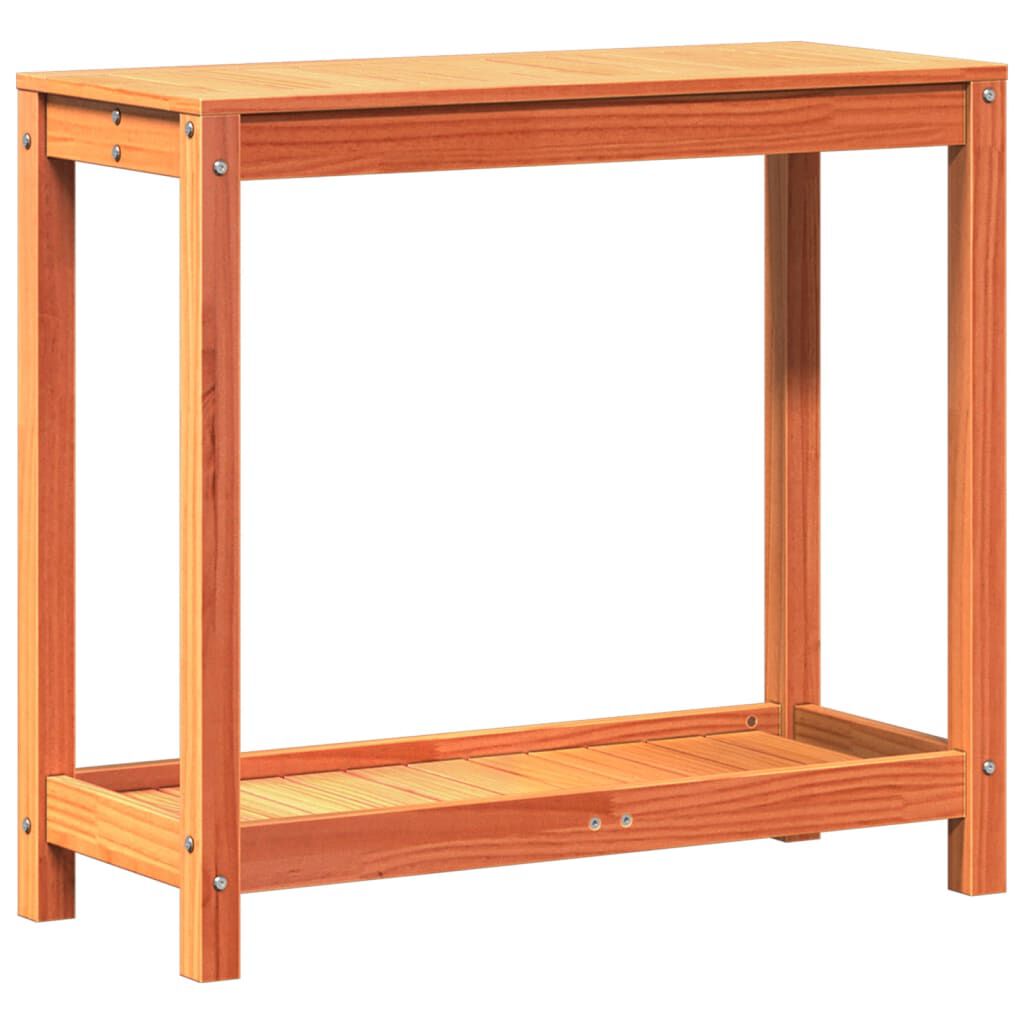 vidaXL Växtbord med hylla vaxad brun 82,5x35x75 cm massiv furu