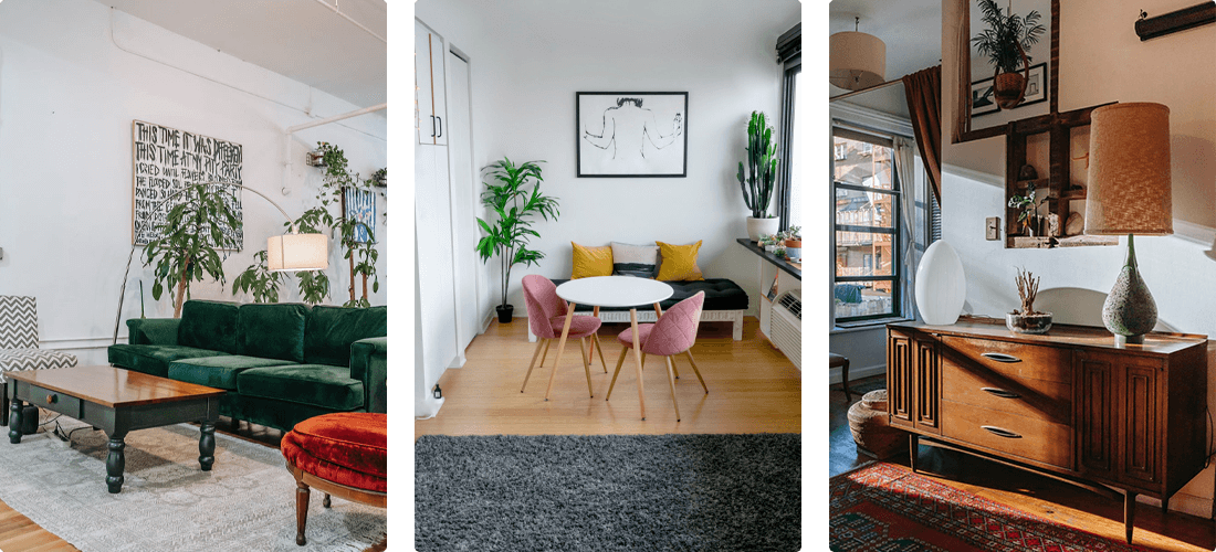 Den eklektiska trenden föreslår en unik estetik. Den baseras på olika möbler, mönster som inte borde gå ihop och en oväntad färgpalett. Att lägga till några enanstående möbler och raffinerade ytor kommer att resultera i en förvånande harmoni av sinnen.